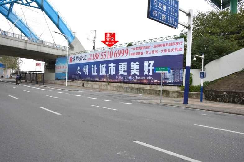 金寨路高架与沪陕高速交汇处落地大牌